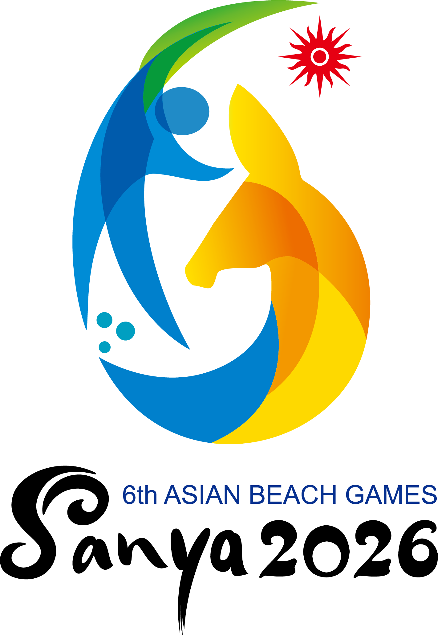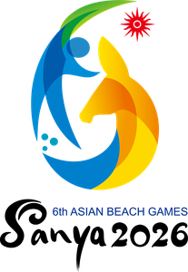 In addition to the sun image of OCA’s emblem, the emblem for the 6th Asia Beach Games overlays blue, green, yellow and orange color-blocks into the number "6" and makes up the image of coconut tree, an athlete and a deer( symbol of Sanya City), implying the artistic conception of ocean, beach, sport, green leaves and Luhuitou’s legend( A famous scenic spot in Sanya).