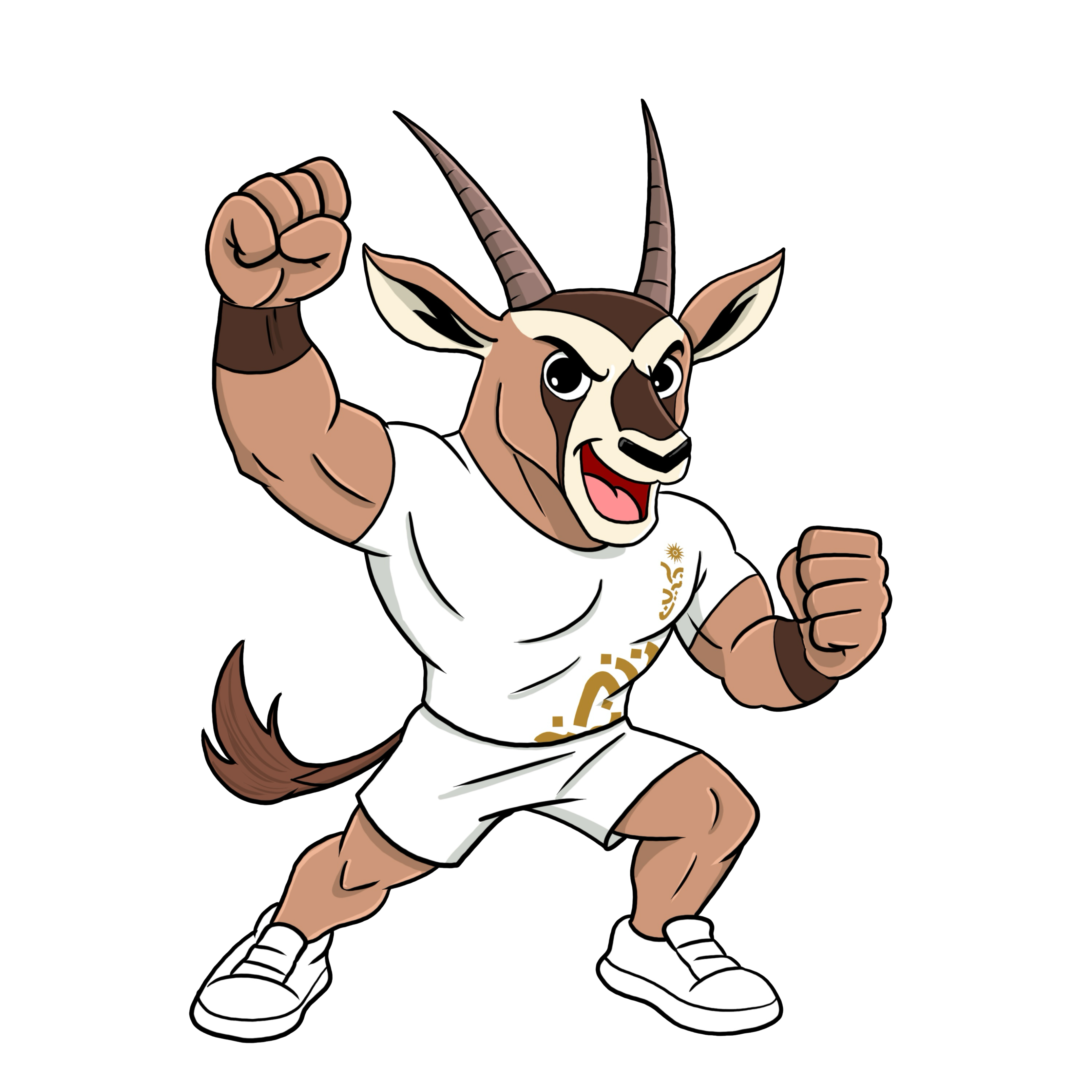 The Games' official mascot, “Shahab.” The Arabian Oryx symbolizes vitality, strength, resilience, and ambition—values that reflect both Bahrain and the spirit of youth.