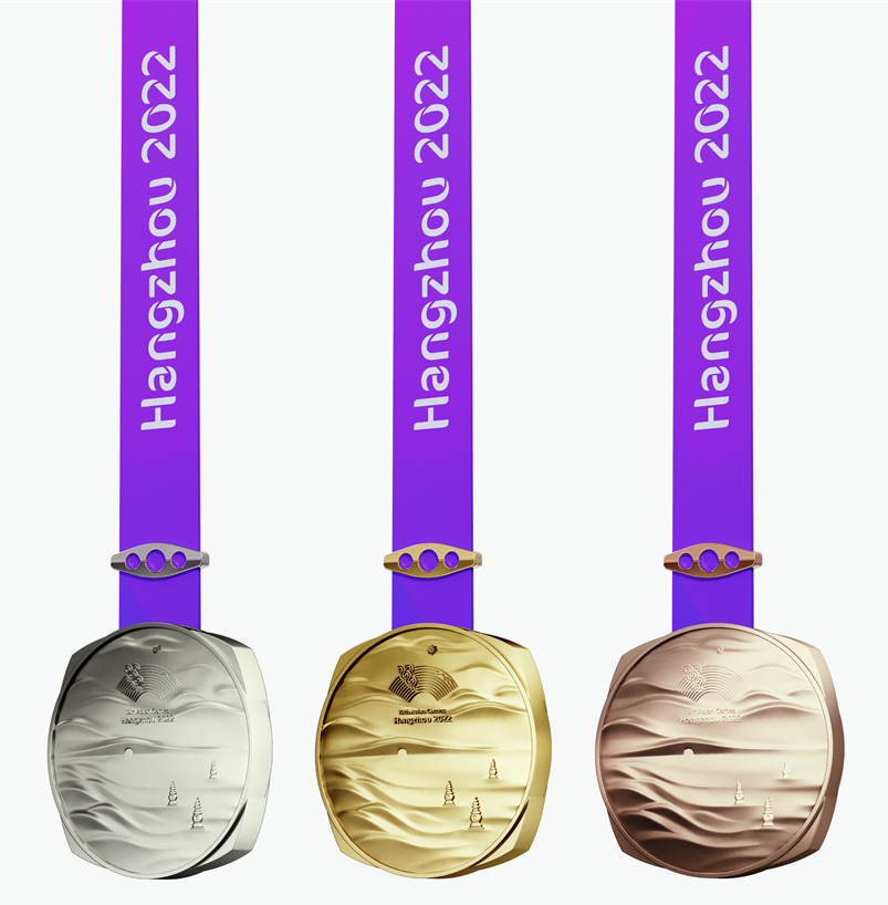 The medal of the 19th Asian Games is named Shan Shui, which is another core element of the Asian Games, along with the official emblem Tides Surging, mascots Congcong, Chenchen, Lianlian, colour system Meeting the World and torch Eternal Flame. It is an important addition to the overall aesthetic of the event.