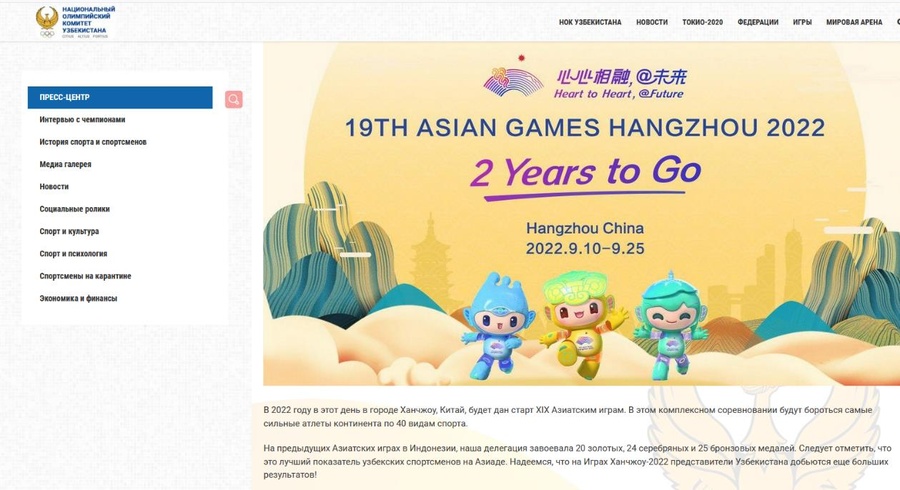 "Their support and participation are key to the success of Hangzhou 2022. As of today there are 45 NOC members in the Olympic Council of Asia. The NOC Relations Team of Hangzhou 2022 will keep up the communication with NOCs to update them on Games preparations in the two years to come."