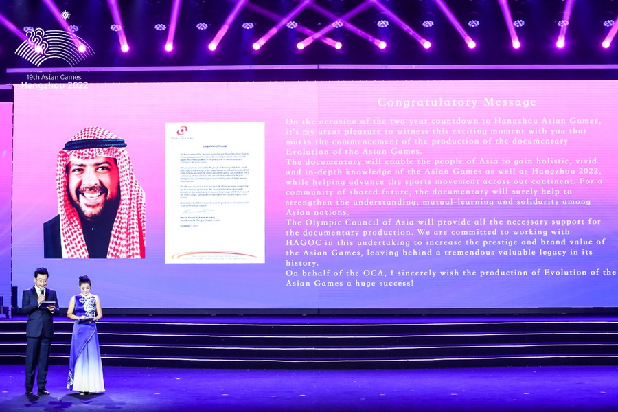 The ceremony included the release of the sports pictograms for the 19th Asian Games, the start of the campaign to choose a volunteer slogan, the introduction of a major documentary series "Hi, Asian Games" and the launch of the "Smart Asian Games Express" Alipay Channel.