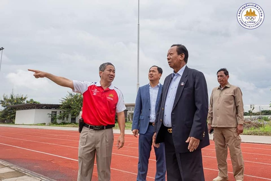 After the visit, HE Vath Chamroeun, Secretary General of CAMSOC and of the National Olympic Committee of Cambodia, said that Samdech Pichey Sena Tea Banh highly appreciated the infrastructure of the main venue for the 32nd SEA Games 2023.