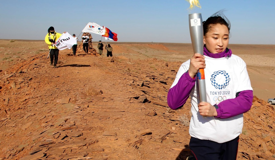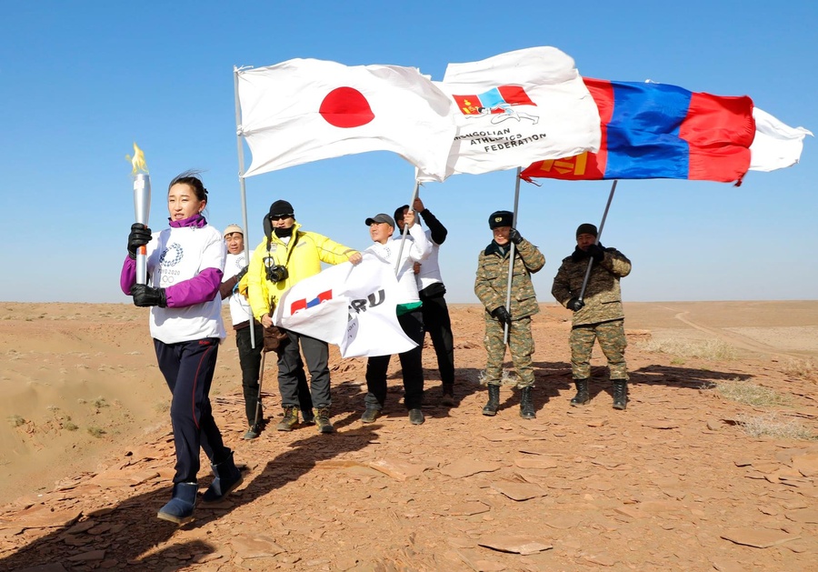The Olympic Torch dedicated to next year’s Tokyo Olympic Games was carried by female runner D. Urandelger and the national flag was raised solemnly at the top of the sacred border hill, symbolizing good luck for Team Mongolia.