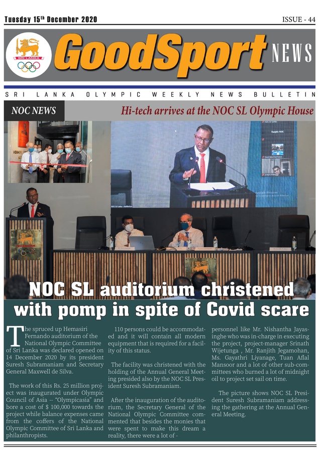 In a Facebook post, the NOC said: “The National Olympic Committee of Sri Lanka's auditorium is fully modernized and refurbished with high-end technical facilities.