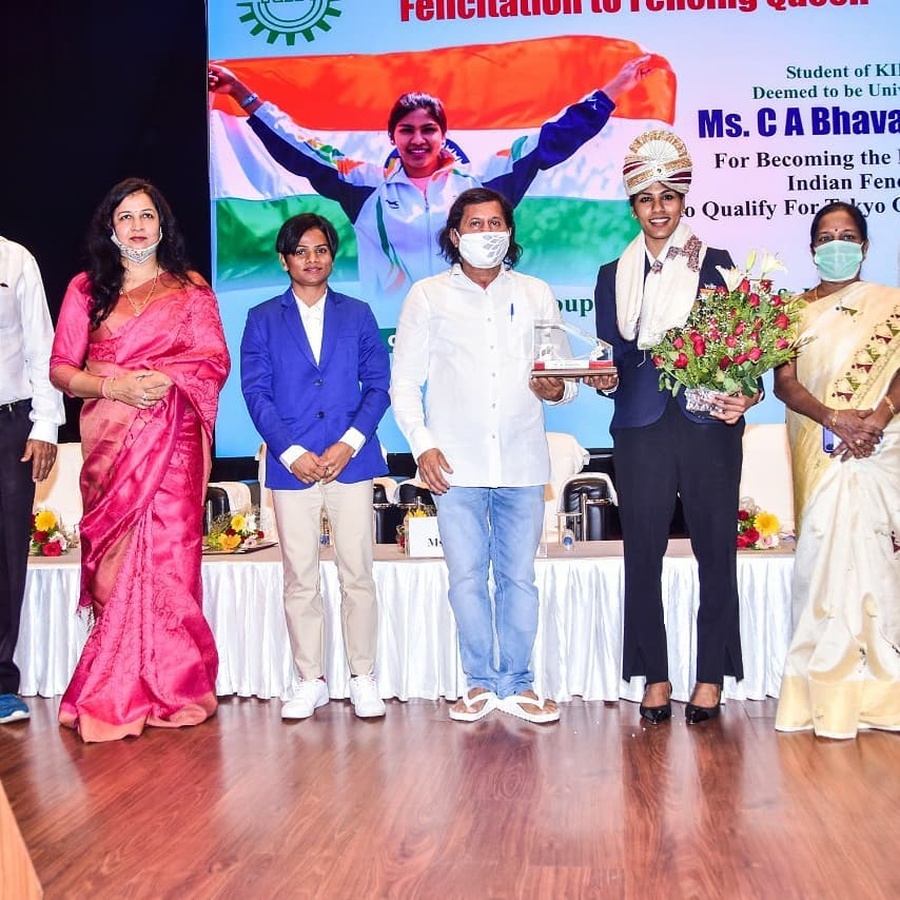 A felicitation ceremony for the ace fencer was organised at KIIT university in the presence of distinguished personalities such as Dr. Achyuta Samanta, founder of KIIT and KISS, “sprint queen” Dutee Chand, fencing officials and university leaders.