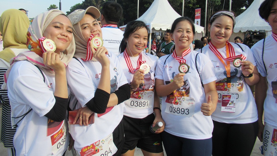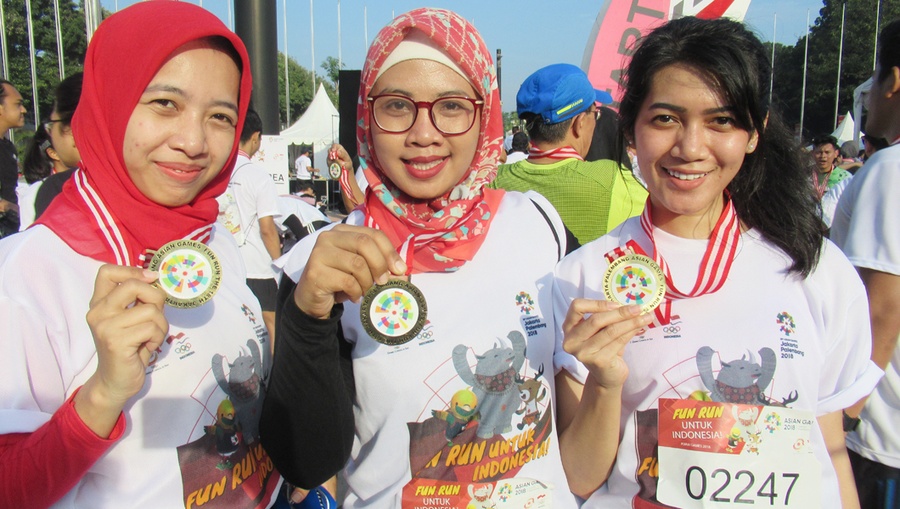 The Jakarta fun run was flagged off by Puan Maharani, Coordinating Minister for Human Development and Cultural Affairs and grand-daughter of the republic’s first president, Soekarno. “I am very happy to see so many people supporting the Asian Games Fun Run for Indonesia, with 5,000 here in Jakarta and another 2,000 in Palembang,” said Puan Maharani.