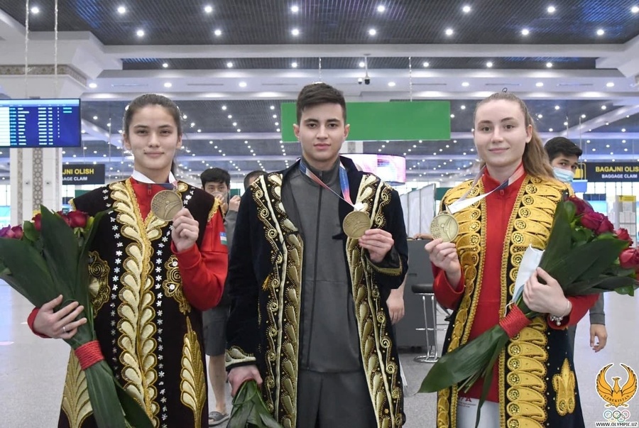 The welcoming party included NOC President Shaabdurakhmonov, Secretary General Oybek Kasimov and Vice President Azizjon Kamilov, representatives of the Ministry of Defence of the Republic of Uzbekistan, relatives and friends of the athletes and fans.