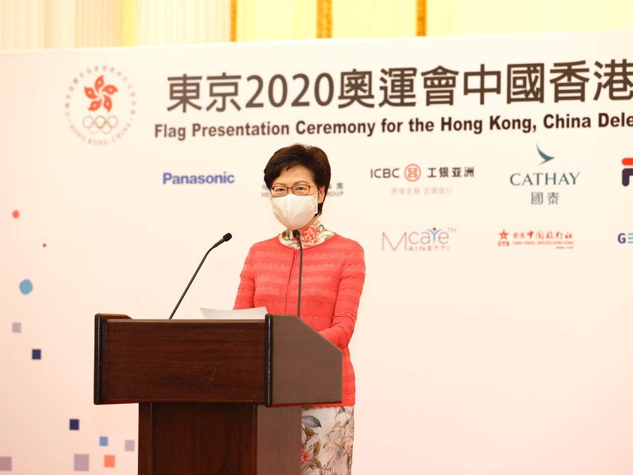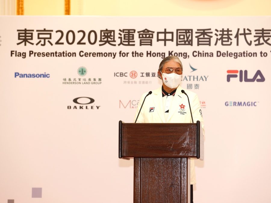 Hong Kong, China, July 9, 2021: The flag presentation ceremony of the Hong Kong, China delegation to the Tokyo 2020 Olympic Games was held at Government House on Thursday, July 8.