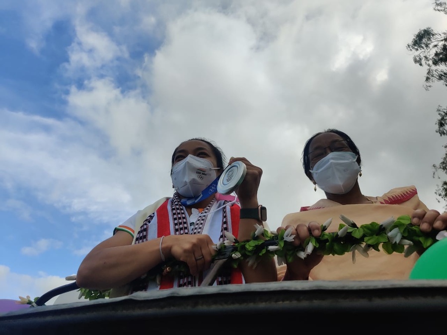 After the felicitation, Chanu headed to her native village led by a motorcade of well-wishers, local club members and police. Nongpok Kakching lies on the eastern side of Imphal Valley, about 20km from the state capital. Despite the ongoing curfew to curb COVID-19, hordes of young and old lined up to cheer Chanu along the way to her village.