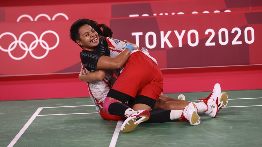 Polii and Rahayu clutched each other after the win, crying while singing the national anthem underneath their masks as the Indonesian flag was hoisted.