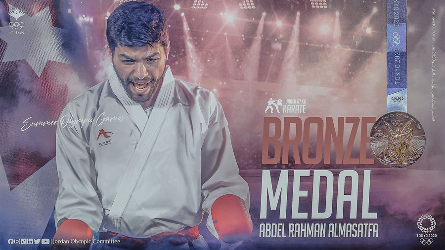 “Our hero Abdel Rahman Al-Masatfa is the first athlete from Jordan to win a karate medal at the Olympics and our Jordanian team has ended its historic participation in the Olympics with two medals for the first time in the same Olympic edition,” the Jordan Olympic Committee said in a Facebook post.