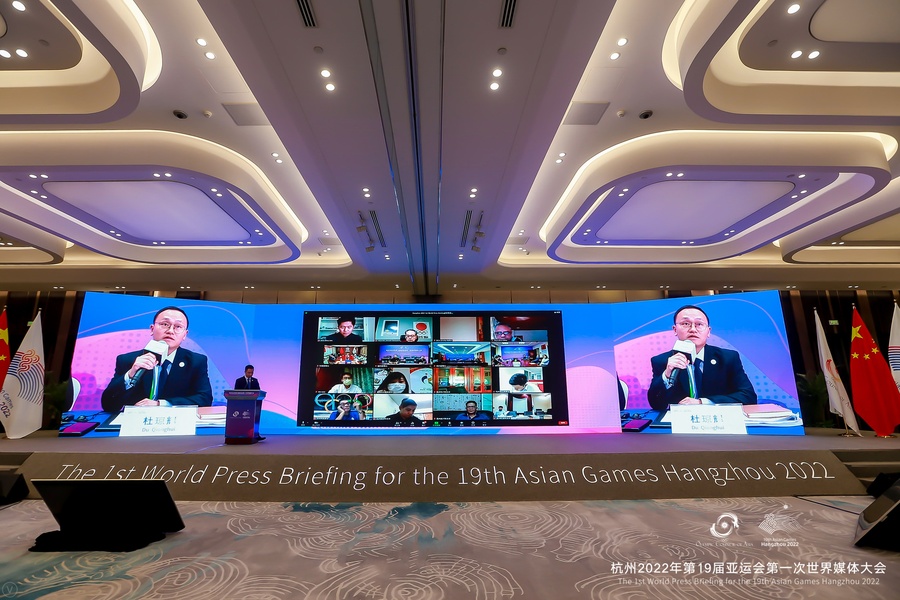 The briefing attracted media from 32 countries and regions, 24 International Federations/Asian Federations, 110 media organisations and a total of 400 attendees in Hangzhou and online. Delegates from the World University Games Chengdu 2022, Sanya Asian Beach Games, Shantou Asian Youth Games and 20th Asian Games Aichi-Nagoya 2026 also attended.