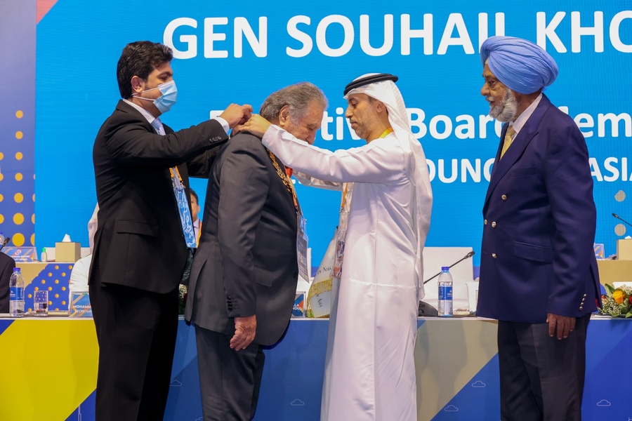 Dubai, United Arab Emirates, November 21, 2021: Three senior and long-standing members of the Asian sporting family were recognised for their invaluable services, becoming the recipients of the Olympic Council of Asia Merit Award on Sunday, November 21.