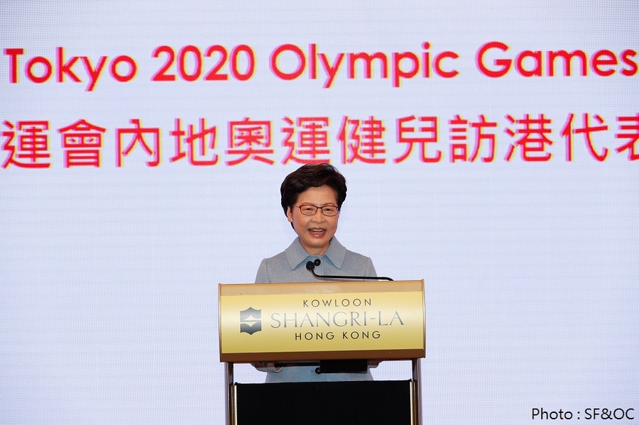 The distinguished guests included the Chief Executive of the Hong Kong SAR, Carrie Lam; Lu Xinning, Deputy Director of the Liaison Office of the Central People's Government in the HKSAR; SF&OC President Timothy Fok; Yang Ning, Under Secretary of the General Administration of Sport of China and Chef de Mission of the delegation; Liu Guangyuan, Commissioner of the Ministry of Foreign Affairs in the HKSAR; Caspar Tsui Ying-wai, Secretary for Home Affairs; and Vincent Liu Ming-kwong, Director of Leisure and Cultural Services.