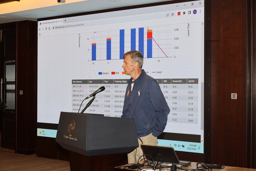 Kuwait City, Kuwait, March 22, 2022: Swimming coaches from 12 National Olympic Committees in West Asia were given a juicy morsel to chew on on the opening day of the Olympic Council of Asia’s special development project when world-famous sports scientist Dr. Genadijus Sokolovas advised them to order fish when eating out at a restaurant.