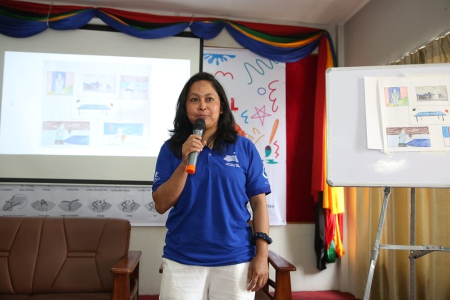 Two national athletes provided motivational words, as well as a sample of their art, to the students – Muna Basukala, who won table tennis bronze at the South Asian Games in Nepal in 2019, and Monday Kaji Shrestha, who won two gold medals in karate at the South Asian Games. They also told the students about their experience of a life in sport.