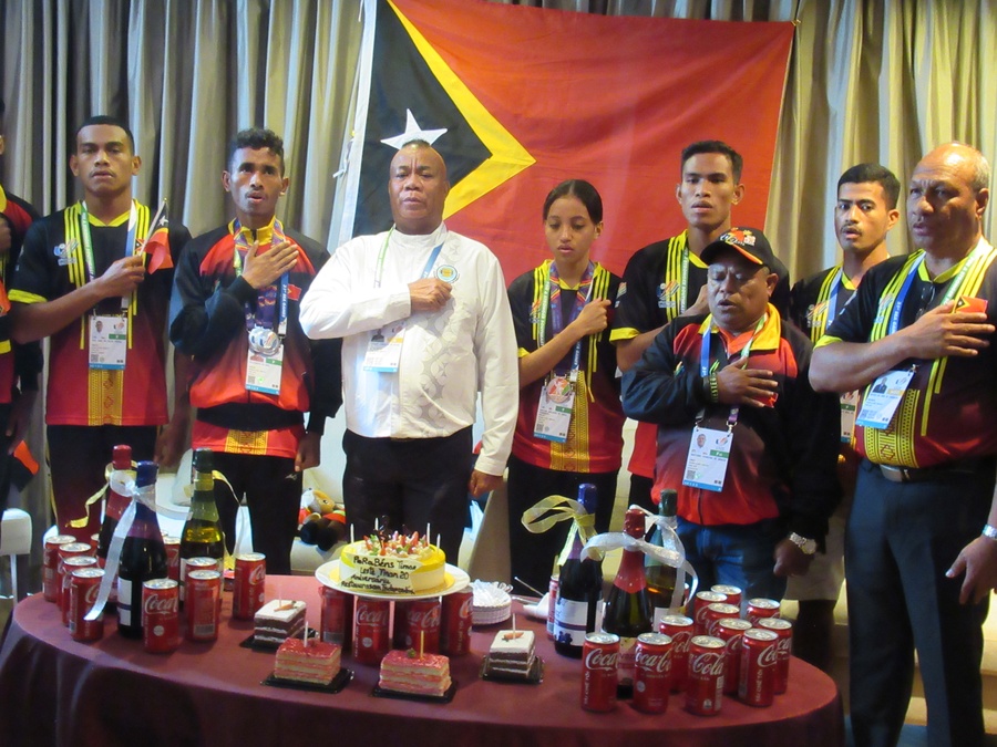 Pride of place in the celebration went to Timor Leste’s two medal-winning athletes to date – middle-distance runner Felisberto de Deus, 22, who won two silver medals in the men’s 5,000m and 10,000m, and 19-year-old Santina Adelaide de Sousa Fernandes, who earned a bronze in the women’s -49kg taekwondo.