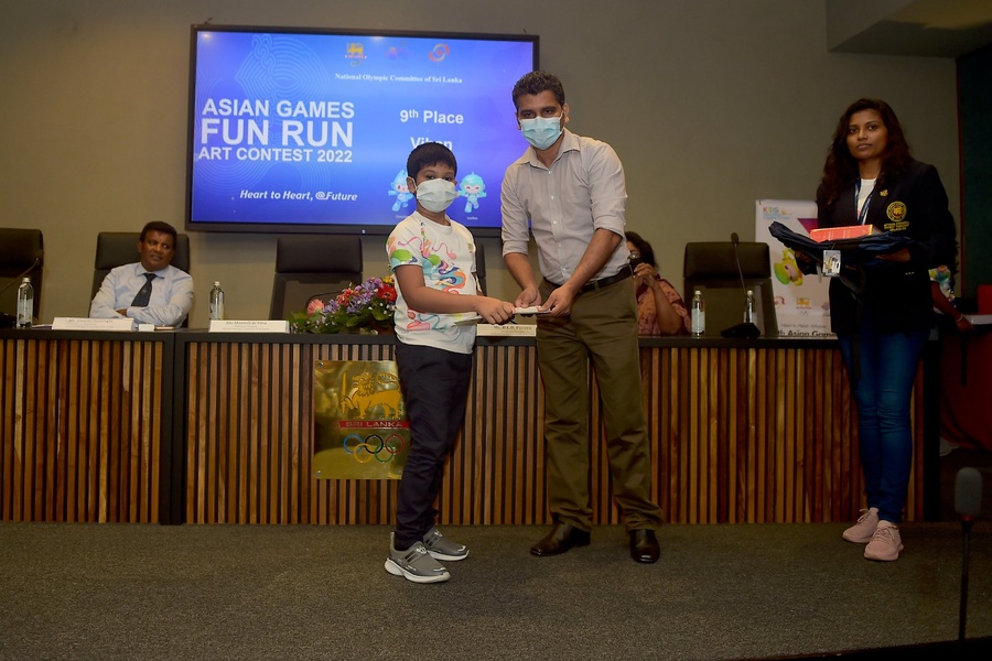 Colombo, Sri Lanka, June 12, 2022: The National Olympic Committee of Sri Lanka held the awards ceremony for the winners of the Hangzhou Asian Games Fun Run Art Contest 2022 on Friday, June 10.