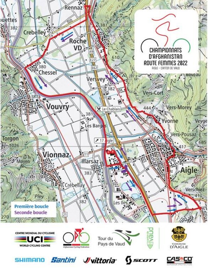 The Afghan women cyclists in the Women Elite and Women Under 23 categories will compete on a course comprising two laps of a 28.5 km circuit with a 72 m difference in altitude. The peloton will ride through the towns of Aigle, Yvorne, Rennaz and Vouvry, in the Chablais region of Vaud and Valais.