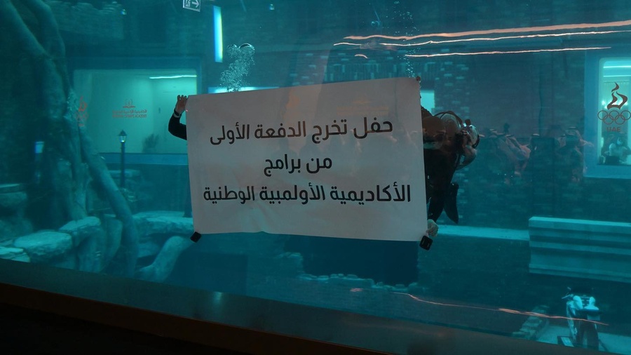 Her Excellency Engineer Azza bint Suleiman, Assistant Secretary General for Administrative and Financial Affairs of the NOC, and Mohammed bin Darwish, acting Director of the National Olympic Academy, also attended the graduation ceremony held at Deep Dive Dubai.