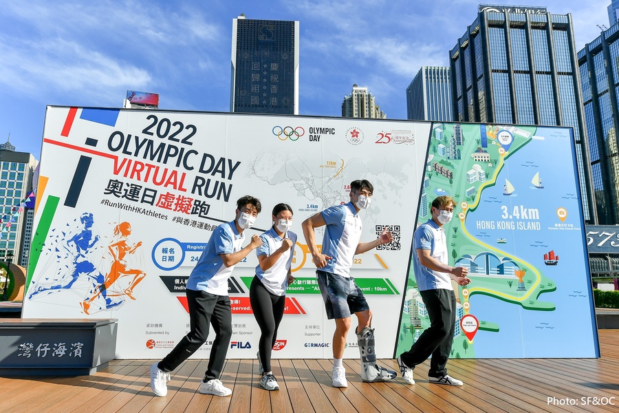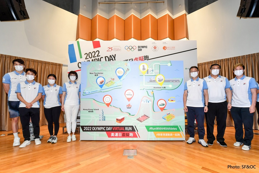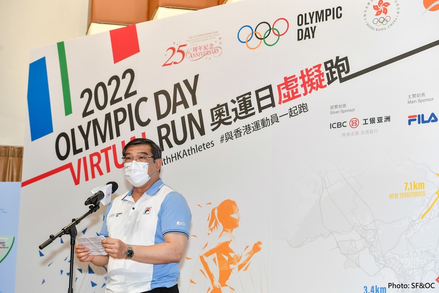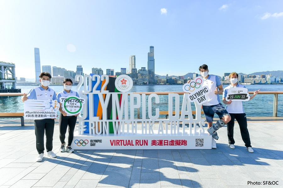 Hong Kong, China, June 23, 2022: The Sports Federation & Olympic Committee of Hong Kong, China held a kick-off ceremony for the 2022 Olympic Day Virtual Run at Olympic House in Causeway Bay on Thursday, June 23.