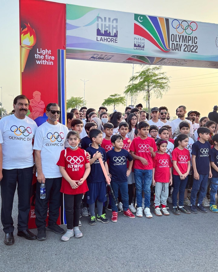 Lahore, Pakistan, June 24, 2022: Pakistan Olympic Association celebrated Olympic Day 2022 in diverse fashion on Thursday, June 23, with one of the main events being a community walk from the Defence Housing Authority Head Office to the Sports Complex in Lahore.