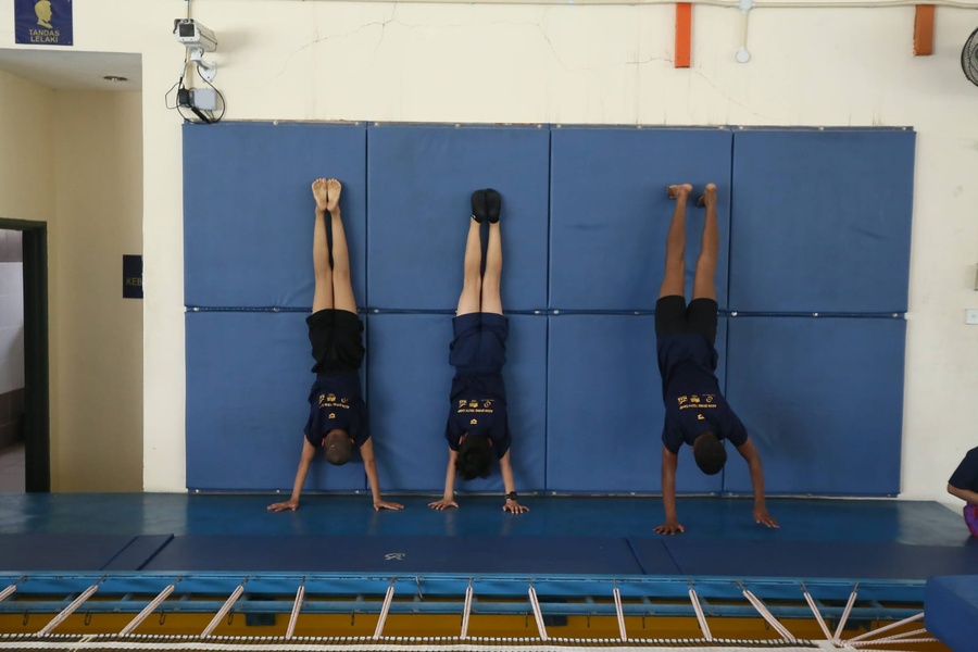 This exercise was in stark contrast to the dryland training of the other teams as the young athletes from overseas made full use of the trampolines, springboards and mats in the vast, well-equipped gym.