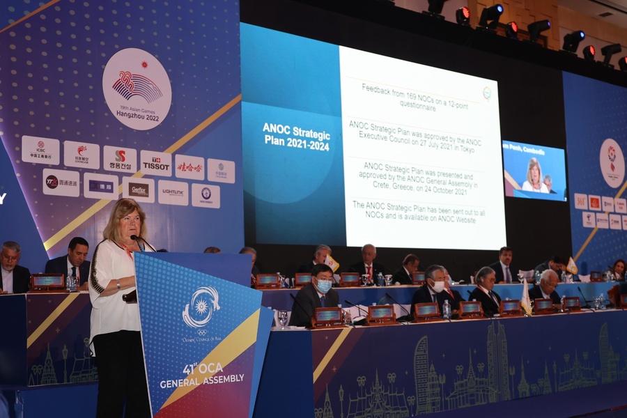 Phnom Penh, Cambodia, October 4, 2022: The Secretary General of the Association of National Olympic Committees, Gunilla Lindberg, provided details of two major upcoming ANOC events in Asia during her presentation at the 41st OCA General Assembly on Tuesday.
