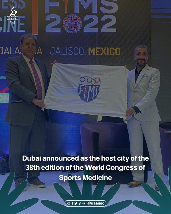Delegates at the International Conference of Sports Medicine in Jalisco, Mexico last month – 117 sports medicine committees from all over the world – chose Dubai as the city to host the next edition in 2024.