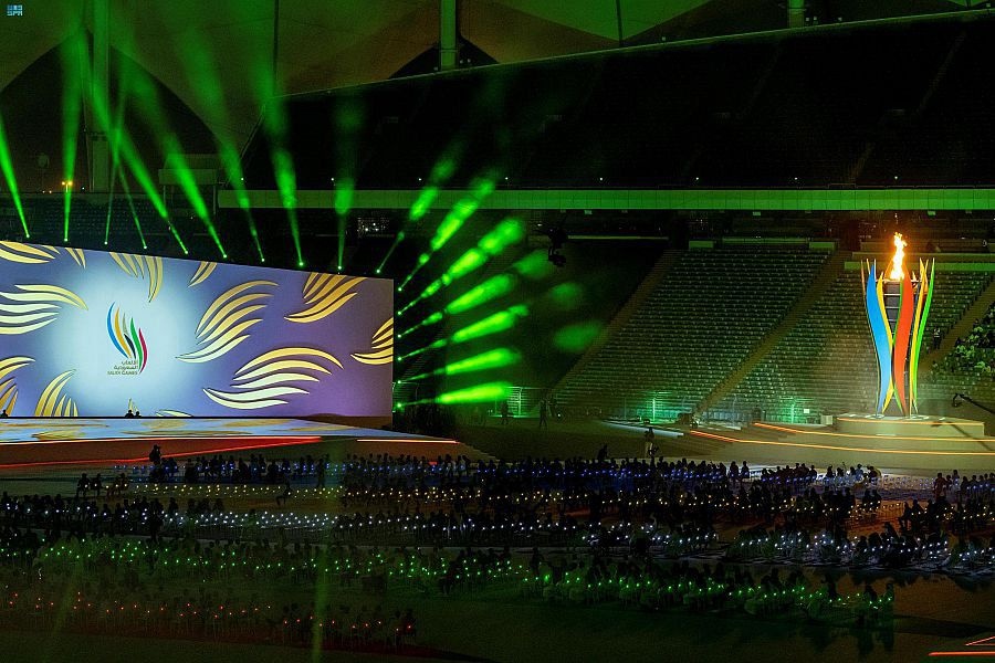 Riyadh, Saudi Arabia, October 28, 2022: Under the patronage of the Custodian of the Two Holy Mosques King Salman bin Abdulaziz Al Saud and on behalf of His Royal Highness Prince Mohammed bin Salman bin Abdulaziz, Crown Prince and Prime Minister, Prince Faisal bin Bandar bin Abdulaziz, Governor of Riyadh region, attended the opening ceremony of the Saudi Games 2022 at the King Fahd International Stadium on Friday, October 28, the Saudi Press Agency reports.