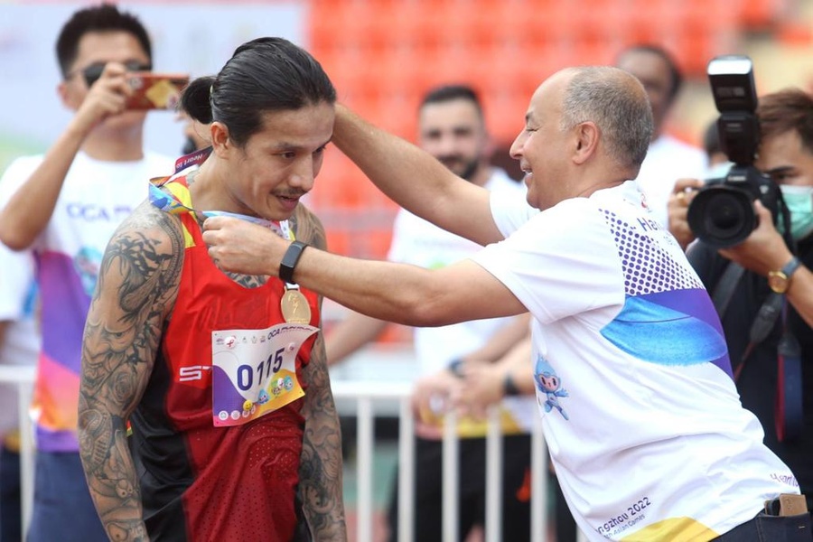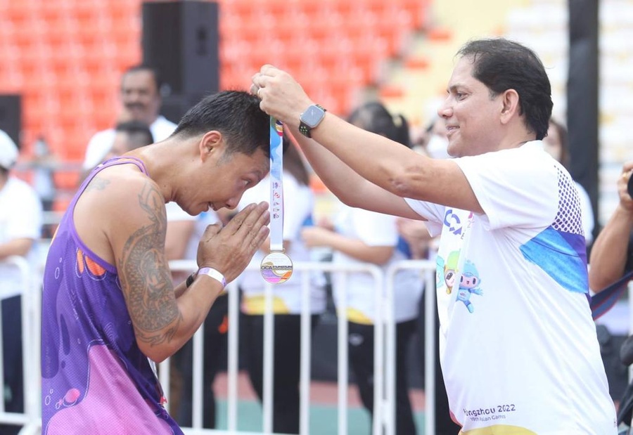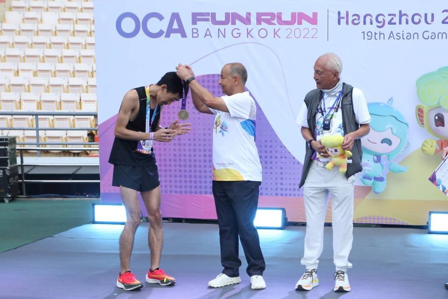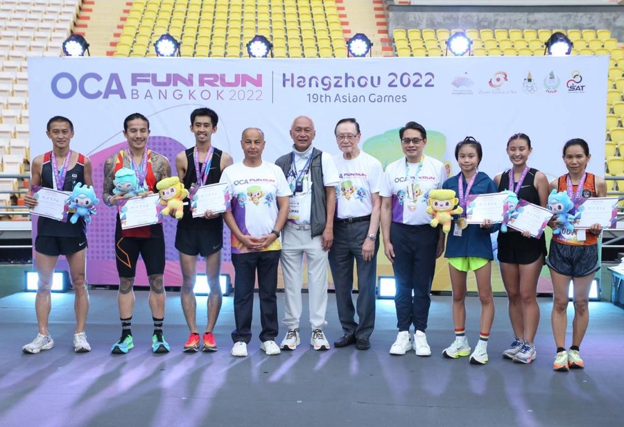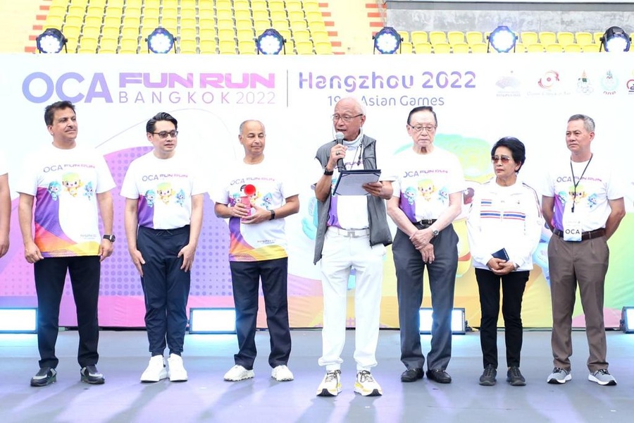 “I would like to express my deepest thanks and congratulations to the Governor of the Sports Authority of Thailand and to the President of the National Olympic Committee of Thailand for their good preparations for the Asian Games Hangzhou 2022,” he said, before helping to signal the start of the 5km fun run around the SAT complex.