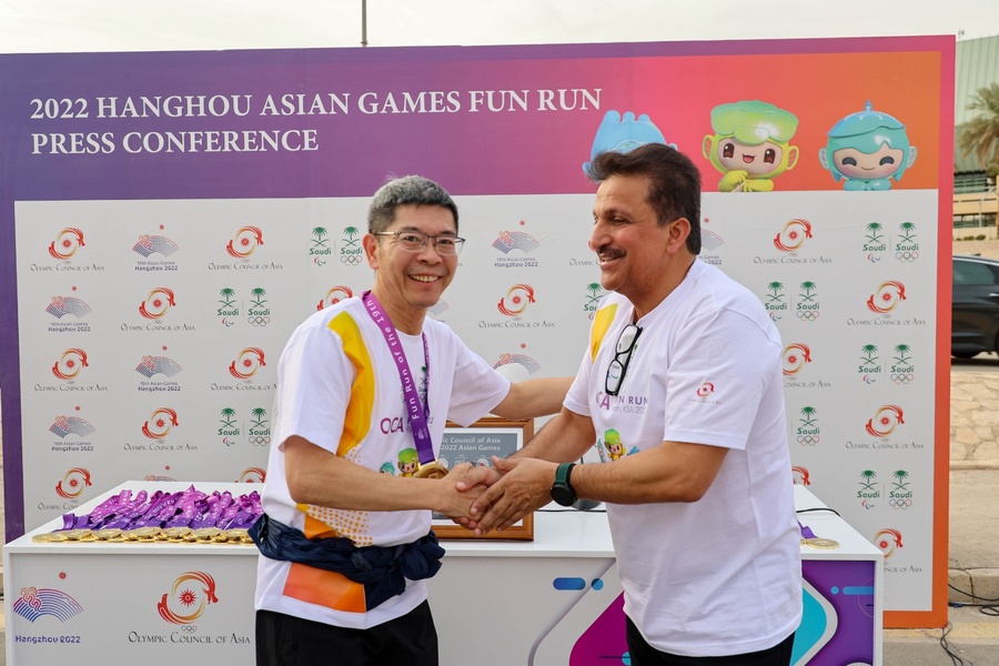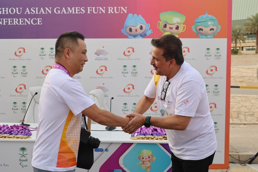 The fun run, which is part of the OCA’s “Asian Games for All” promotion campaign, took place on the sidelines of the OCA/Olympic Solidarity Regional Forum and involved representatives of the Hangzhou Asian Games Organising Committee (HAGOC), OCA, National Olympic Committee delegates and executives and staff from the Saudi Olympic and Paralympic Committee (SOPC).