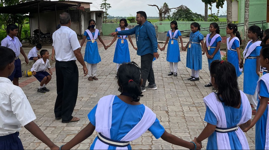 At Laxmisagar Government High School, located in a remote village, it was common practice for girls to remain in the classroom while boys participated in physical education classes. However, since the introduction of OVEP, the trainers have been advocating mixed-gender activities and games, encouraging girls to be selected in teams and play along with boys.