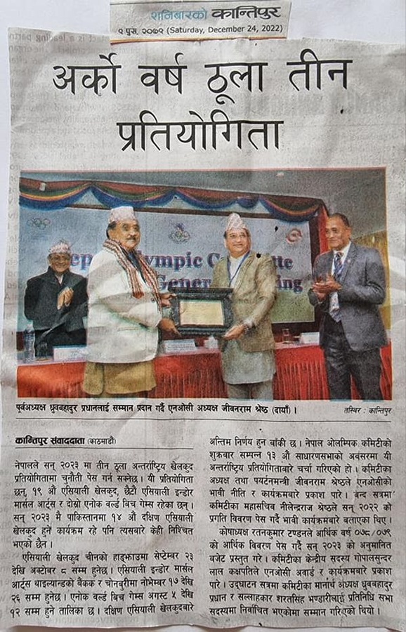 NOC Executive Secretary Sujanlal Shrestha also briefed the gathering about the upcoming international programme in 2023, with the major focus being on the 19th Asian Games in Hangzhou, China from September 23 to October 8.
