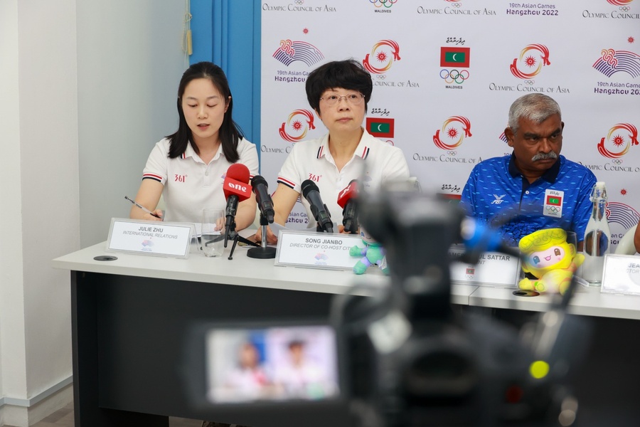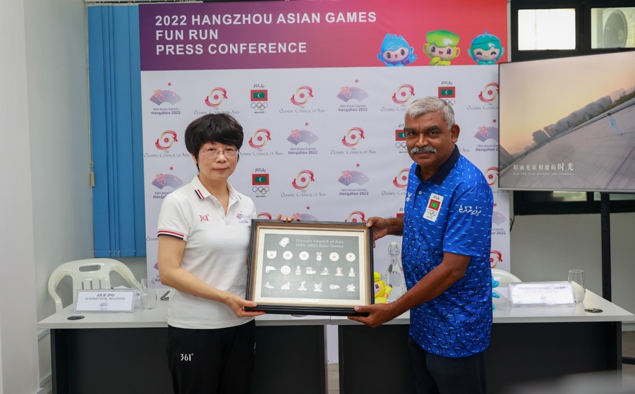 Male, Maldives, February 2, 2023: Representatives of the Olympic Council of Asia and Hangzhou Asian Games Organising Committee held a press briefing on Thursday ahead of the Asian Games Fun Run scheduled to take place in Hulhumalé on Saturday, February 4.