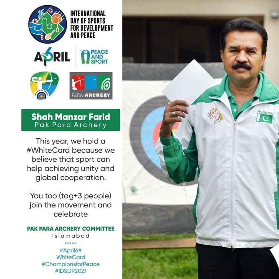 "This year we hold a #WhiteCard because we believe that sport can help achieve unity and global cooperation," said Pakistan Para Archery's Shah Manzar Farid.