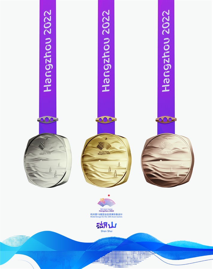 The medal is named Shan Shui, which is another core element of the Asian Games, along with the official emblem Tides Surging, mascots Congcong, Chenchen and Lianlian, colour system Meeting the World and torch Eternal Flame.