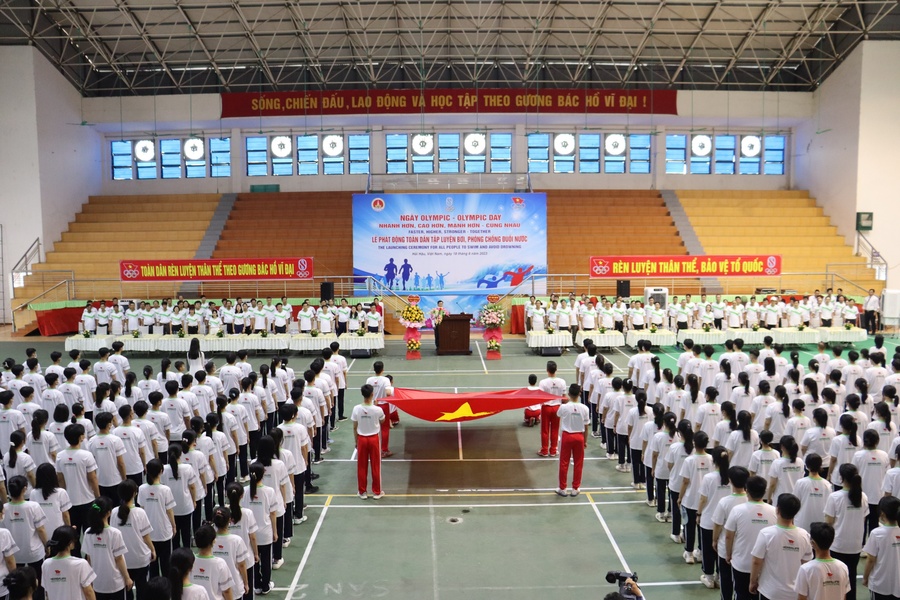 The commemoration ceremony for the founding of the modern Olympic Movement on June 23, 1894 was presided over by Mr. Nguyen Hong Minh, Deputy Director of the General Administration of Sports of Vietnam; Mr. Tran Van Manh, Secretary General of the Vietnam Olympic Committee; Mr. Tran Le Doai, Vice Chairman of the Nam Dinh Provincial People's Committee; Mr. Nguyen Tien Dung, Director of the Nam Dinh Provincial Department of Culture, Sports and Tourism; and other leaders of Hai Hau District.
