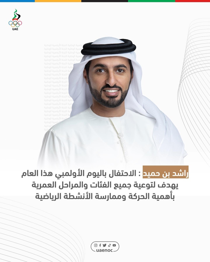 Meanwhile, Sheikh Rashid bin Hamid Al-Nuaimi, UAE NOC Vice President, emphasised the Olympic Day message which is to raise awareness of the importance of practising sports activities among all sections of the community.