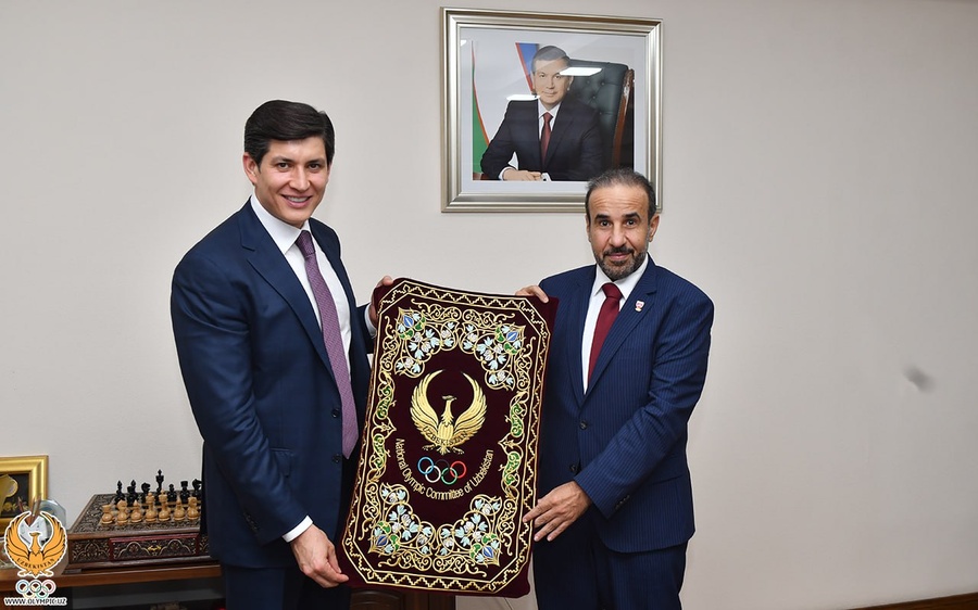 This meeting was followed by another meeting at the NOC Headquarters in Tashkent where the honoured guest was received by NOC Secretary General Oybek Kasimov.