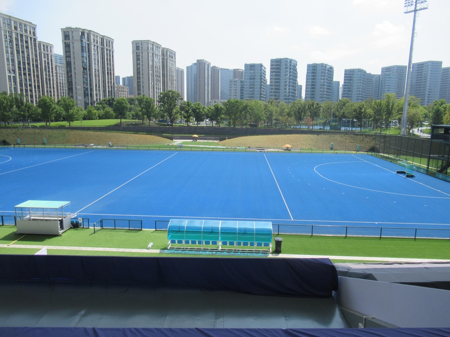 Next stop was the 5,000-capacity Gongshu Canal Sports Park stadium which will host the hockey competition – and offer direct qualification to the Paris Olympic Games for the winners of the women’s and men’s competitions. It is nicknamed the Hangzhou Umbrella due to its unique design. Students could also test their hockey skills with a fan-friendly demonstration area in the concourse.