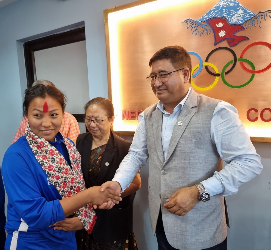 Also present at the ceremony were NOC Vice President and Executive Director Chaturananda Raj Vaidya, All Nepal Kabaddi Association President Arbind Kumar Jha, Association Secretary Tarkaj Bhatta and NOC executive member Niranjan Shrestha.