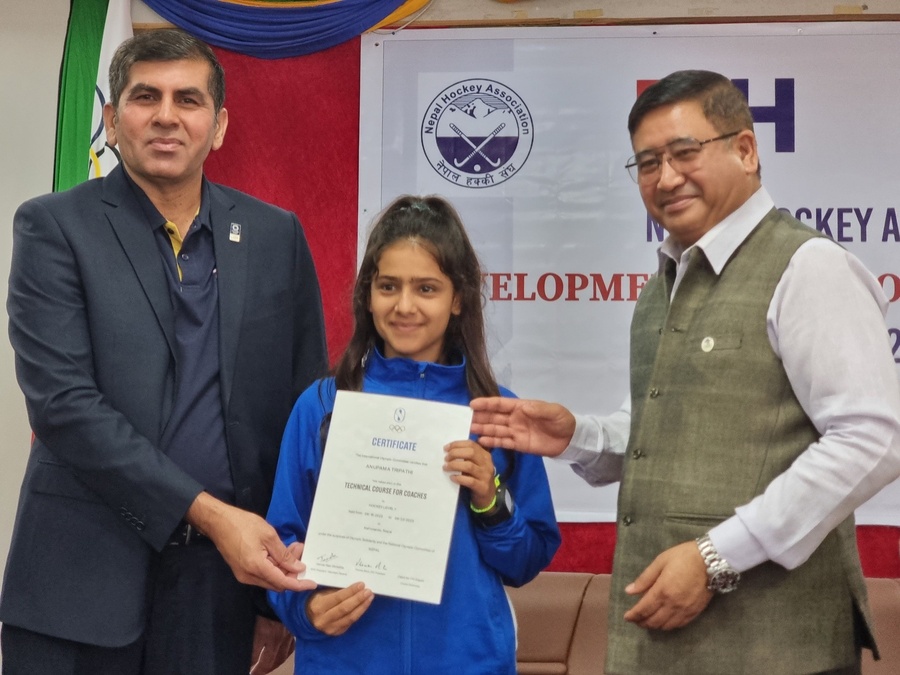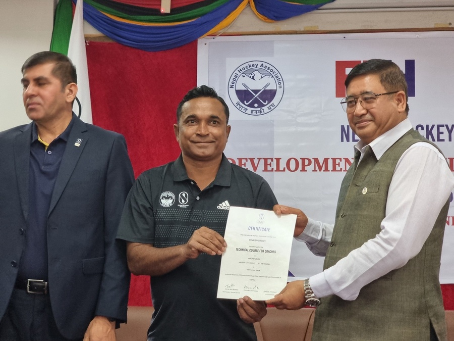 President Shrestha handed over certificates to the participants who had completed the technical course for coaches, which was conducted in collaboration with the International Hockey Federation (FIH) and Asian Hockey Federation (AHF).