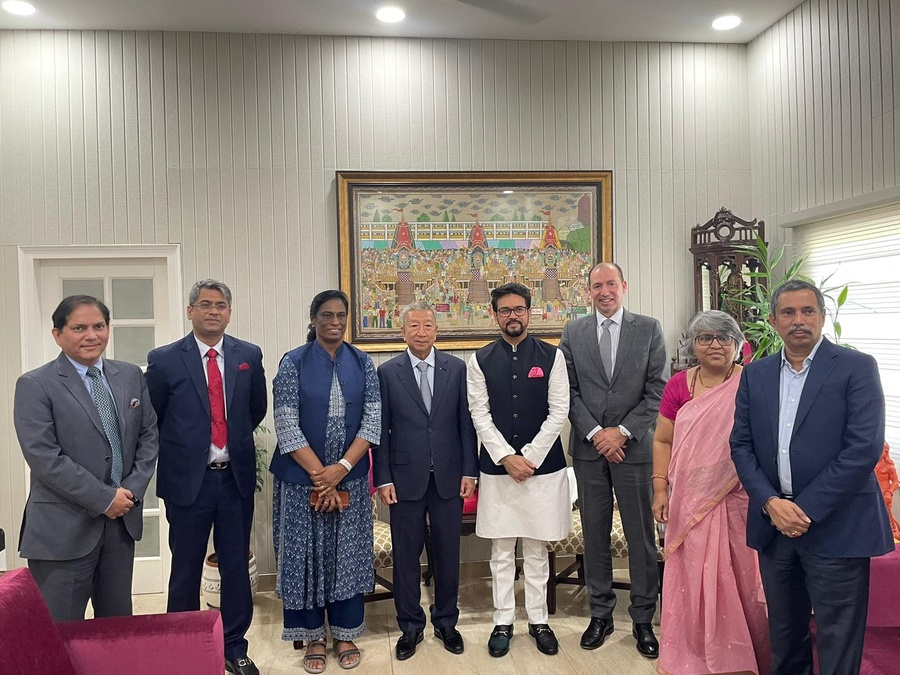 The meeting involved the Indian Minister for Youth Affairs and Sports, HE Anurag Singh Thakur, Indian Olympic Association President PT Usha, OCA Acting Director General Vinod Kumar Tiwari and Panos Tzivanidis, IOC Director for Corporate Events and Services.