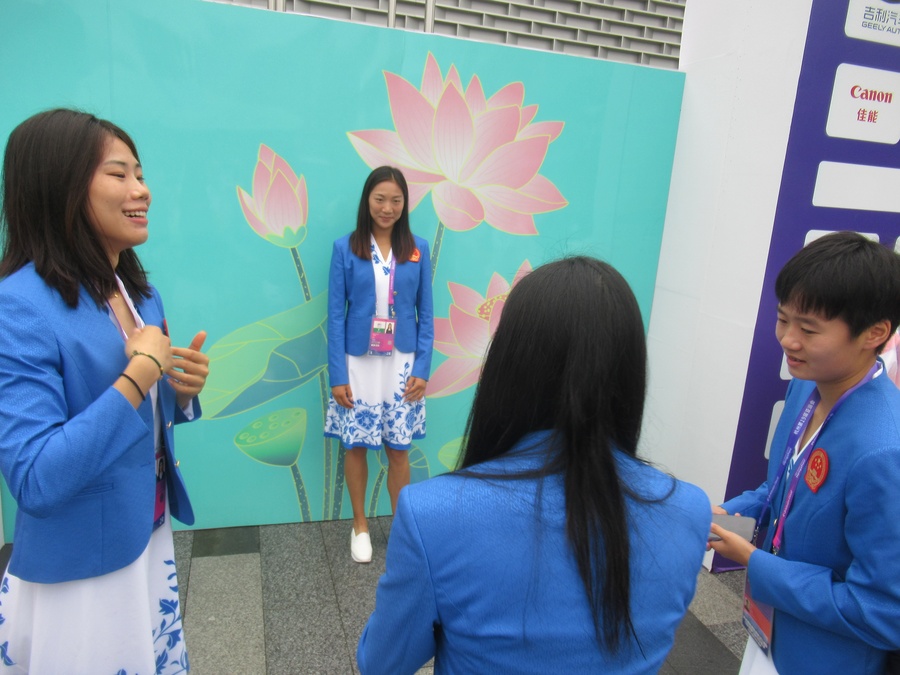 The second purpose of the ceremony was to welcome the Chinese delegation into the Asian Games Village in the first Team Welcome Ceremony of a series that will run until September 22. The ceremony included an exchange of gifts followed by a photo op with the athletes.