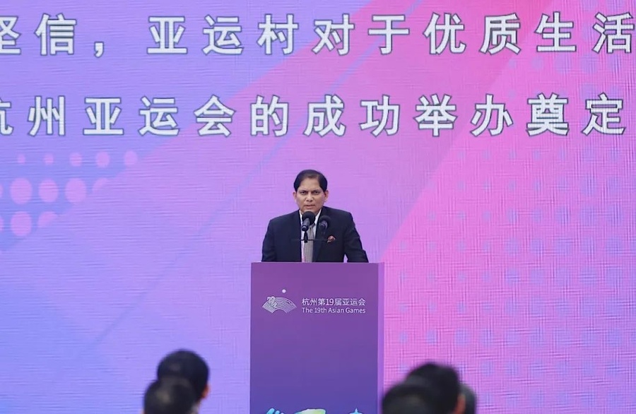 Hangzhou, China, September 16, 2023: The Acting Director General of the Olympic Council of Asia, Vinod Kumar Tiwari, described the Hangzhou Asian Games Village as “beautiful and outstanding” during the opening ceremony of the village on Saturday morning.