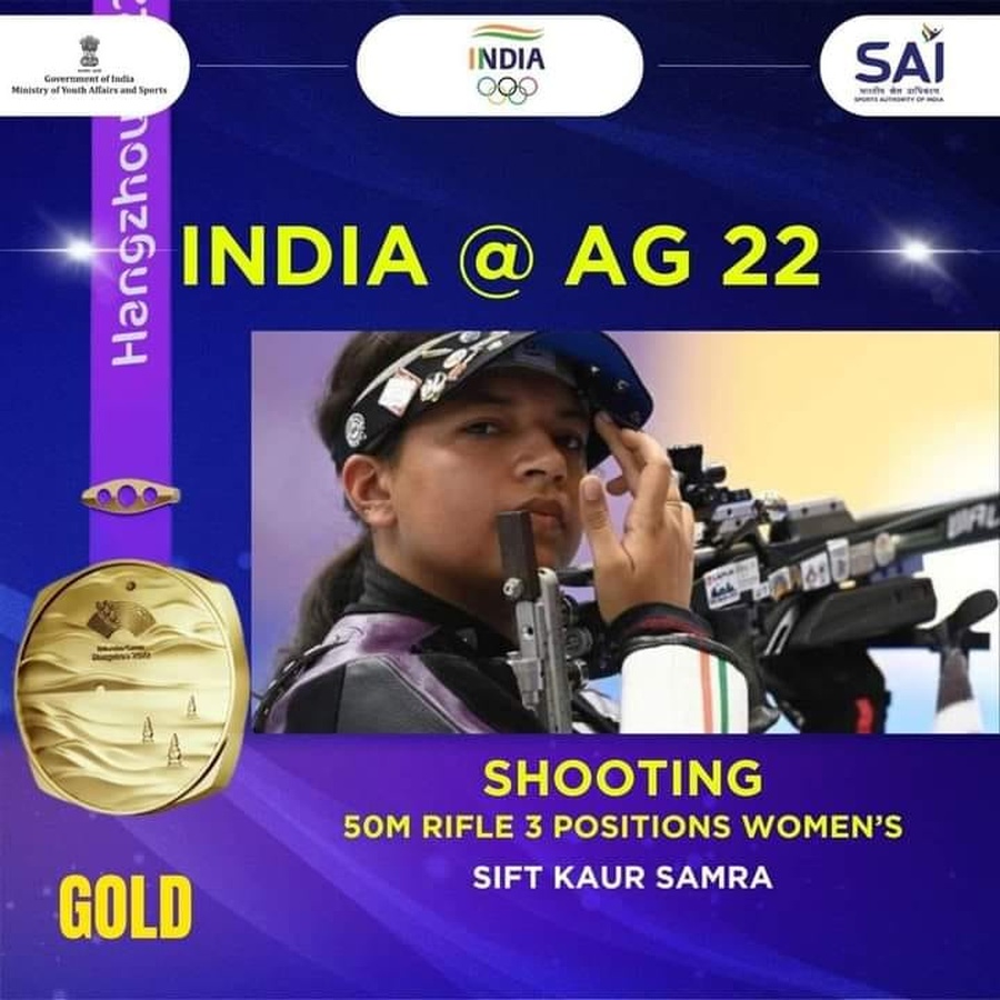 Hangzhou, China, September 27, 2023: Sift Kaur Samra set a new world record as she won India’s first individual gold medal at the Hangzhou Asian Games by claiming the 50m Rifle 3 Positions Women’s title on Wednesday.