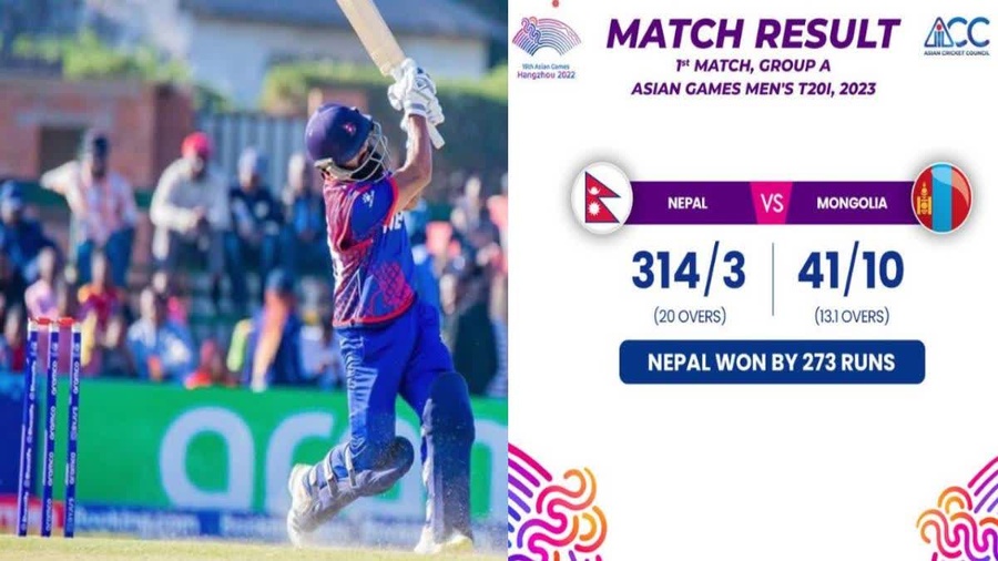 Records fell merrily like the mid-autumn leaves along Hangzhou’s tree-lined streets as Nepal’s batters smashed Mongolia by a massive 273 runs – yes, a record in all T20s – in the opening match of the men’s competition at the Asian Games.