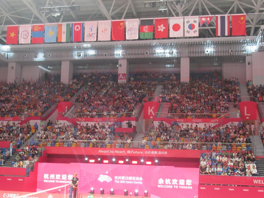 Saturday night was showtime for the Afghan women’s volleyball team, and a big and enthusiastic crowd gathered at the Hangzhou Normal University Gymnasium to cheer them on in their Pool D opener against Kazakhstan.