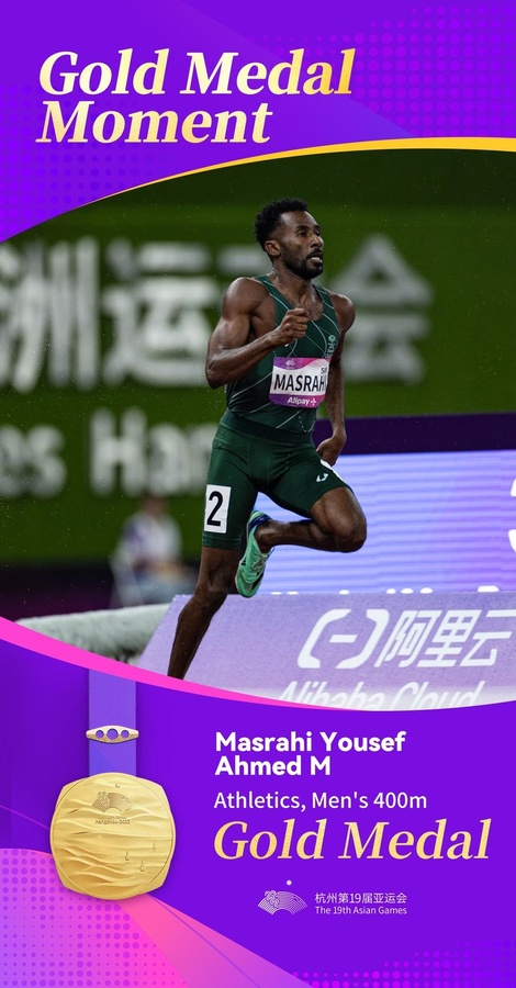 Meanwhile, in the men’s 400m final, Yousef Ahmed Masrahi of Saudi Arabia turned back the clock winning gold in a photo-finish. The 35-year-old Masrahi, who won gold in the same event at the 2014 Incheon Games, finished in 45.55 to edge out Asian champion Kentaro Sato of Japan by two-hundredths of a second. Bahrain’s Yusuf Abbas Ali took the bronze in 45.65, a personal best.